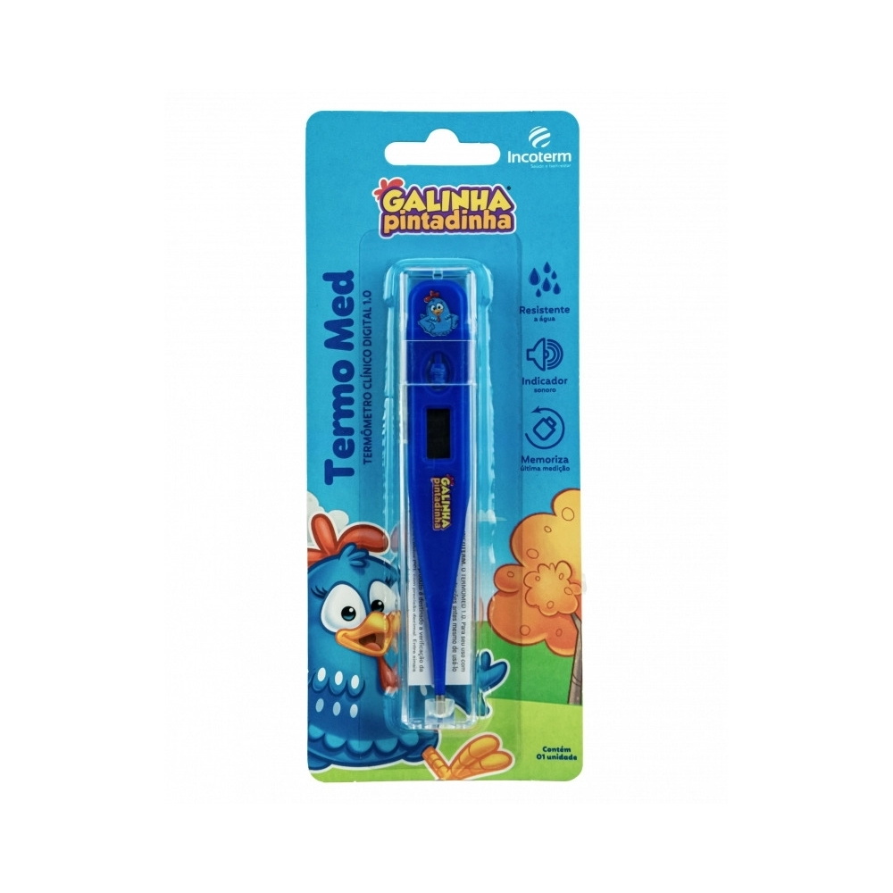 APARELHOS E TESTES>SAÚDE E BEM-ESTAR>EQUIPAMENTOS>TERMOMETRO DIGITAL GALINHA PINTADINHA AZUL