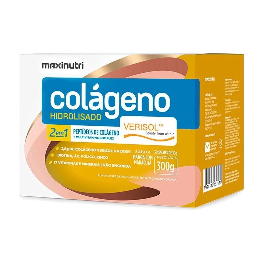 SAÚDE E BEM-ESTAR>COLAGENO HIDROLISADO VERISOL 2 EM 1 SACHE MANGA C/MARACUJA C/30 10 (MAXINUTRI)