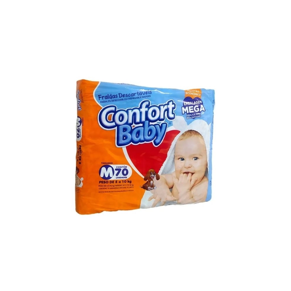 FRALDAS>SAÚDE E BEM-ESTAR>FRALDA CONFORT BABY MEGA M C/70 UND (MEGAFRAL)
