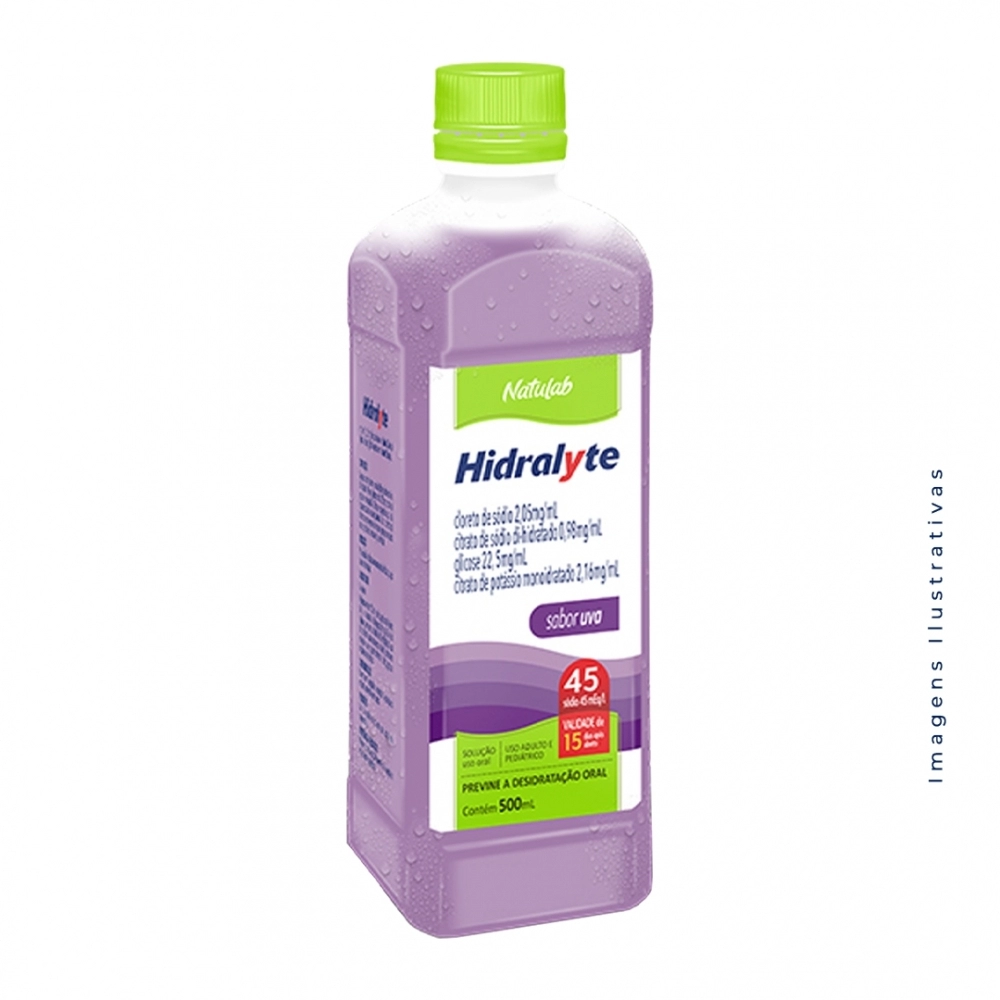 MEDICAMENTOS>MEDICAMENTOS>LIVRES>HIDRALYTE SOLUCAO REIDRATANTE 45 UVA 500ML (NATULAB)