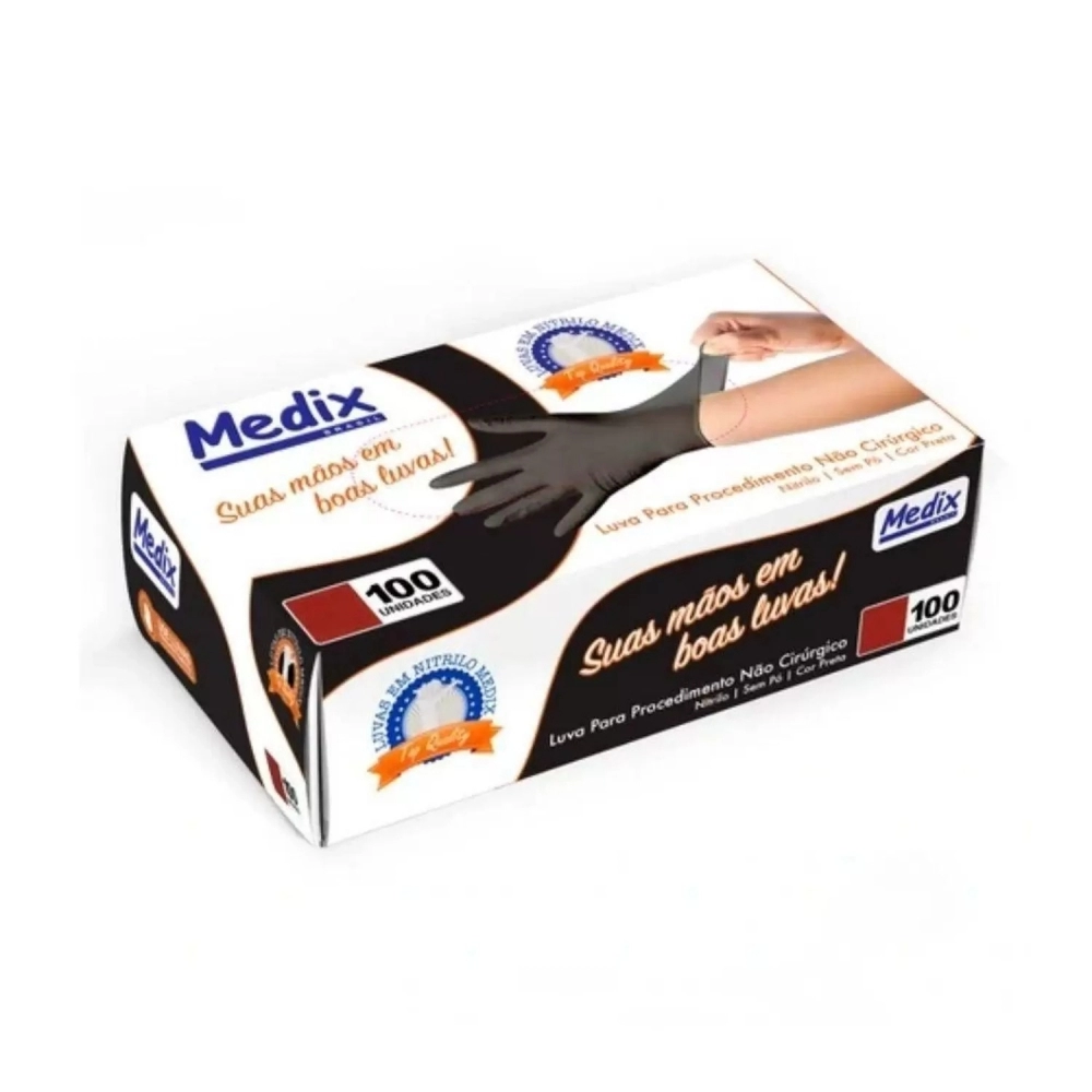 CORRELATOS>LUVA NITRILICA PRETA P C/100 SEM PO (MEDIX)