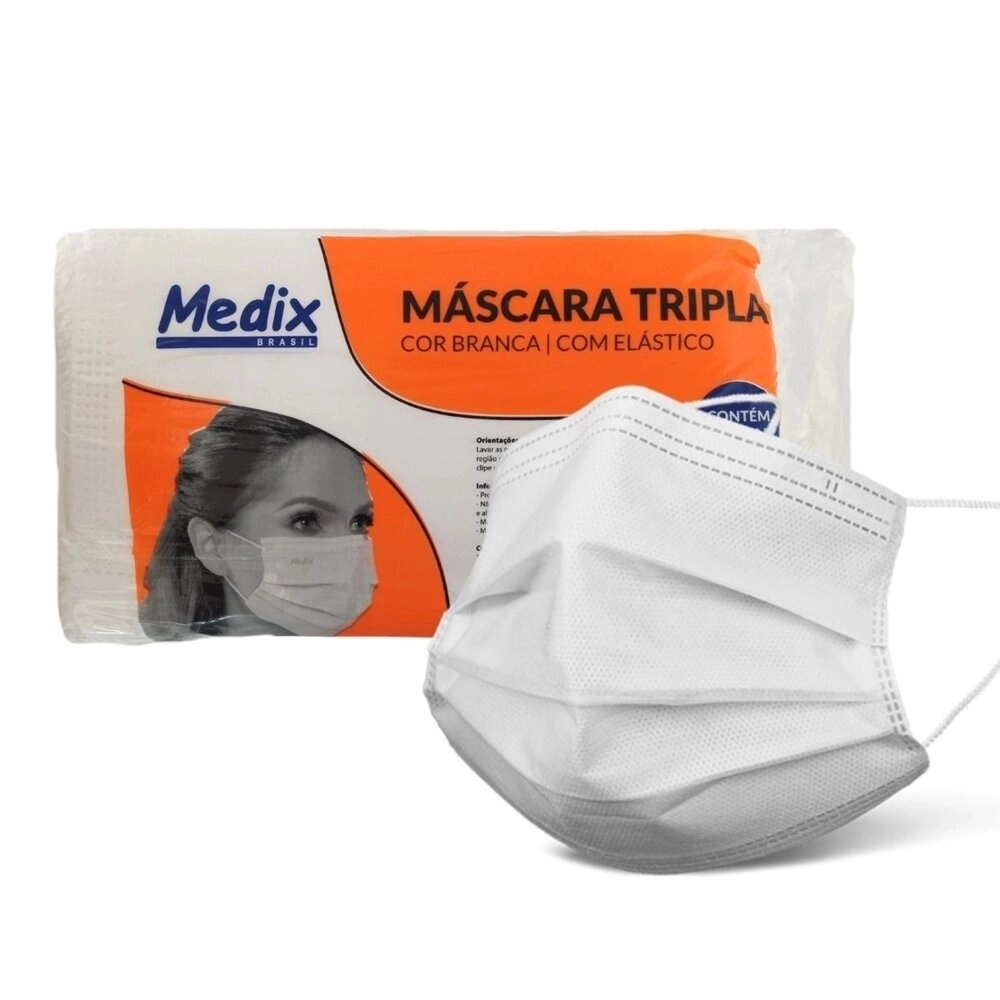 CORRELATOS>MASCARA DESCARTAVEL TRIPLA BRANCA C/50 PACOTES (MEDIX)