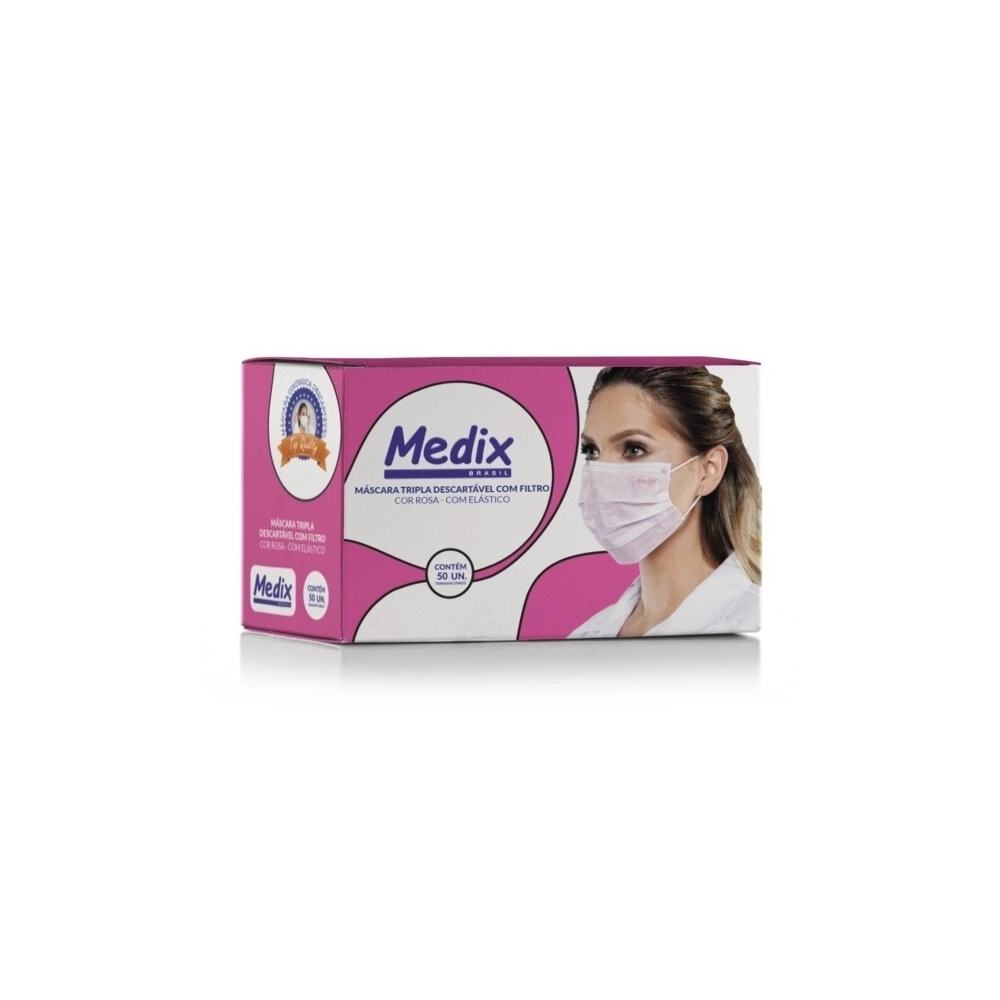 CORRELATOS>MASCARA DESCARTAVEL TRIPLA ROSA C/50 UND (MEDIX)