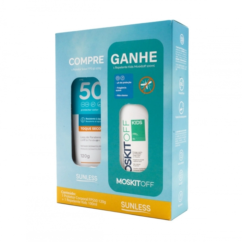 CUIDADOS PESSOAIS>KIT PROTETOR SUNLESS OIL FREE FPS 50 120G + REPELENTE KIDS 100ML