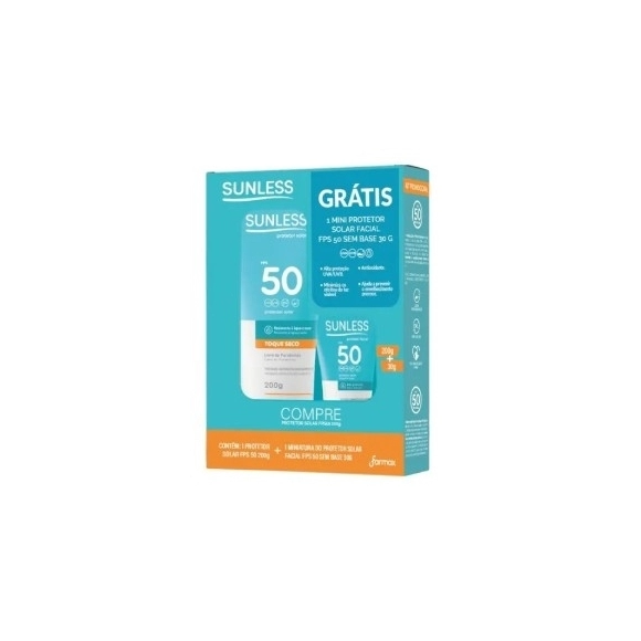 CUIDADOS PESSOAIS>KIT PROTETOR SUNLESS TOQUE SECO FPS 50 200G + FACIAL SEM COR 30G