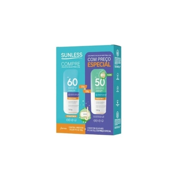 CUIDADOS PESSOAIS>KIT PROTETOR SUNLESS TOQUE SECO FPS60 120G + KIDS FPS50 120G